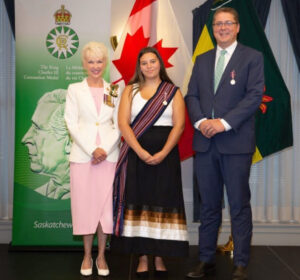 (Makayla Hamilton pictured in the middle receiving her King Charles III coronation medal)